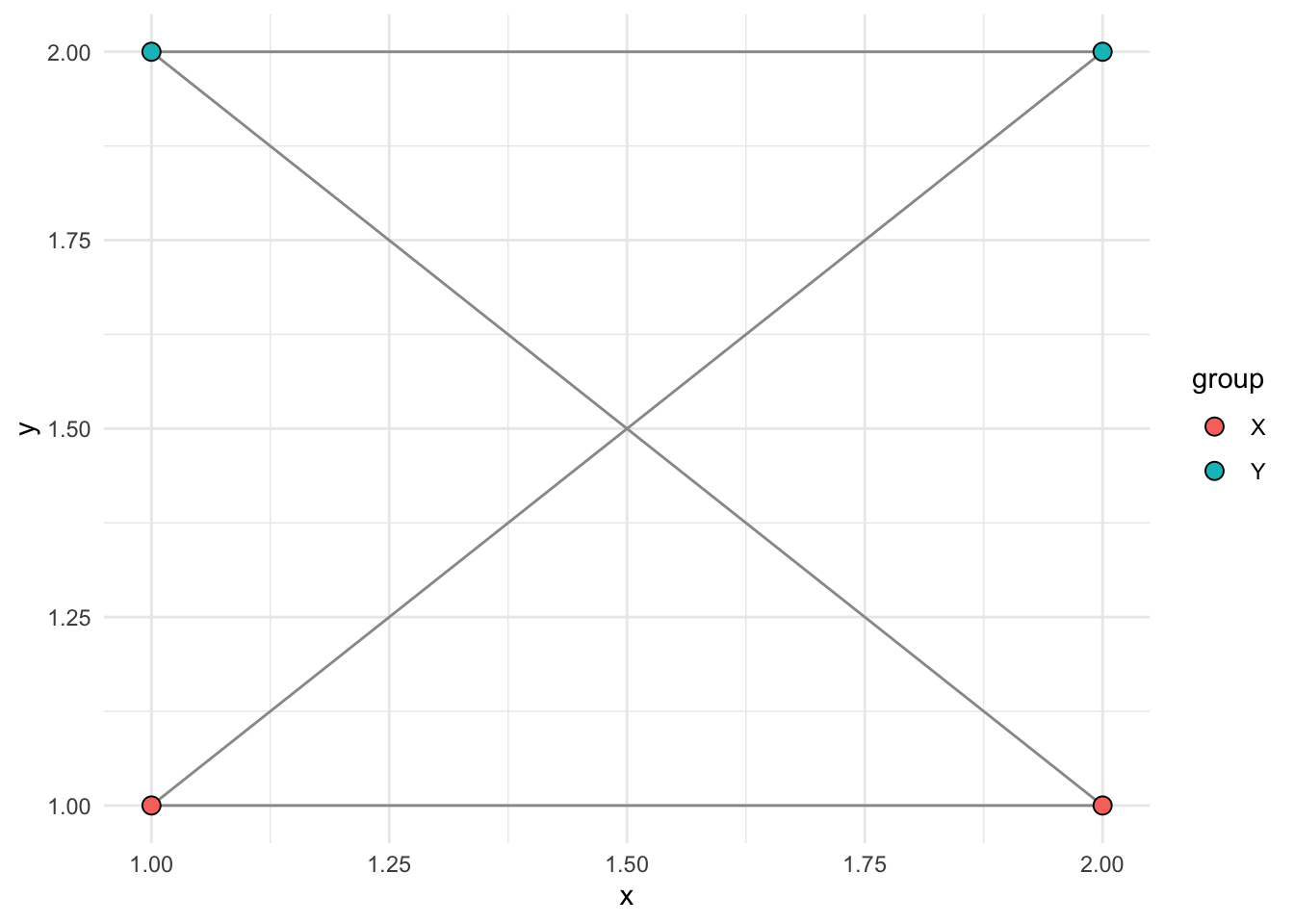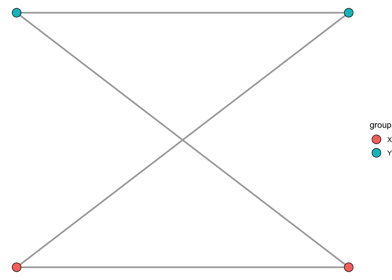 igraph::V(graph)$group <- c("X", "X", "Y", "Y")Basic graph: