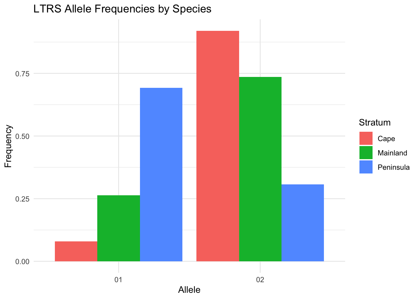 labs(title = "LTRS Allele Frequencies by Species") +