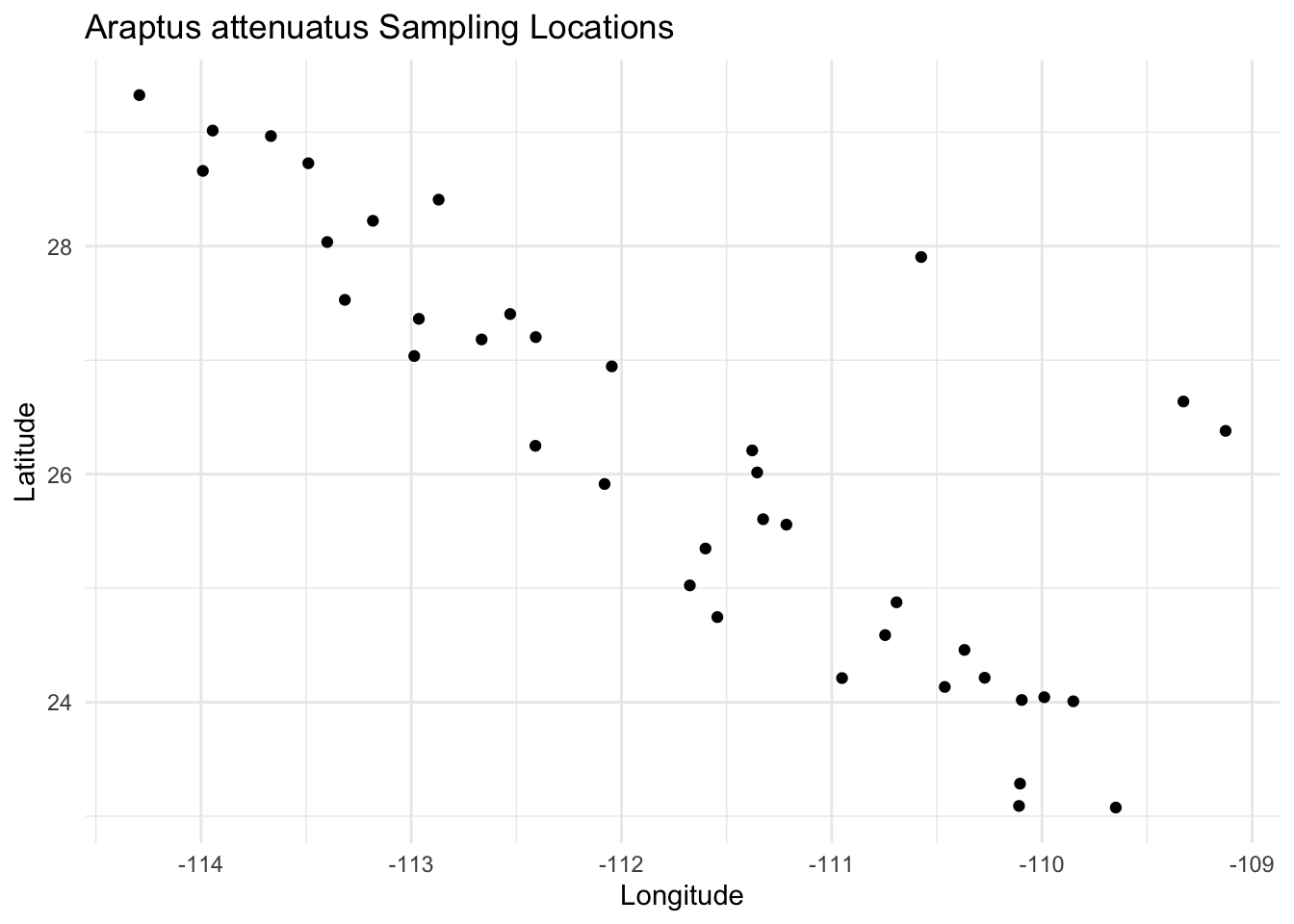 labs(title = "Araptus attenuatus Sampling Locations") +